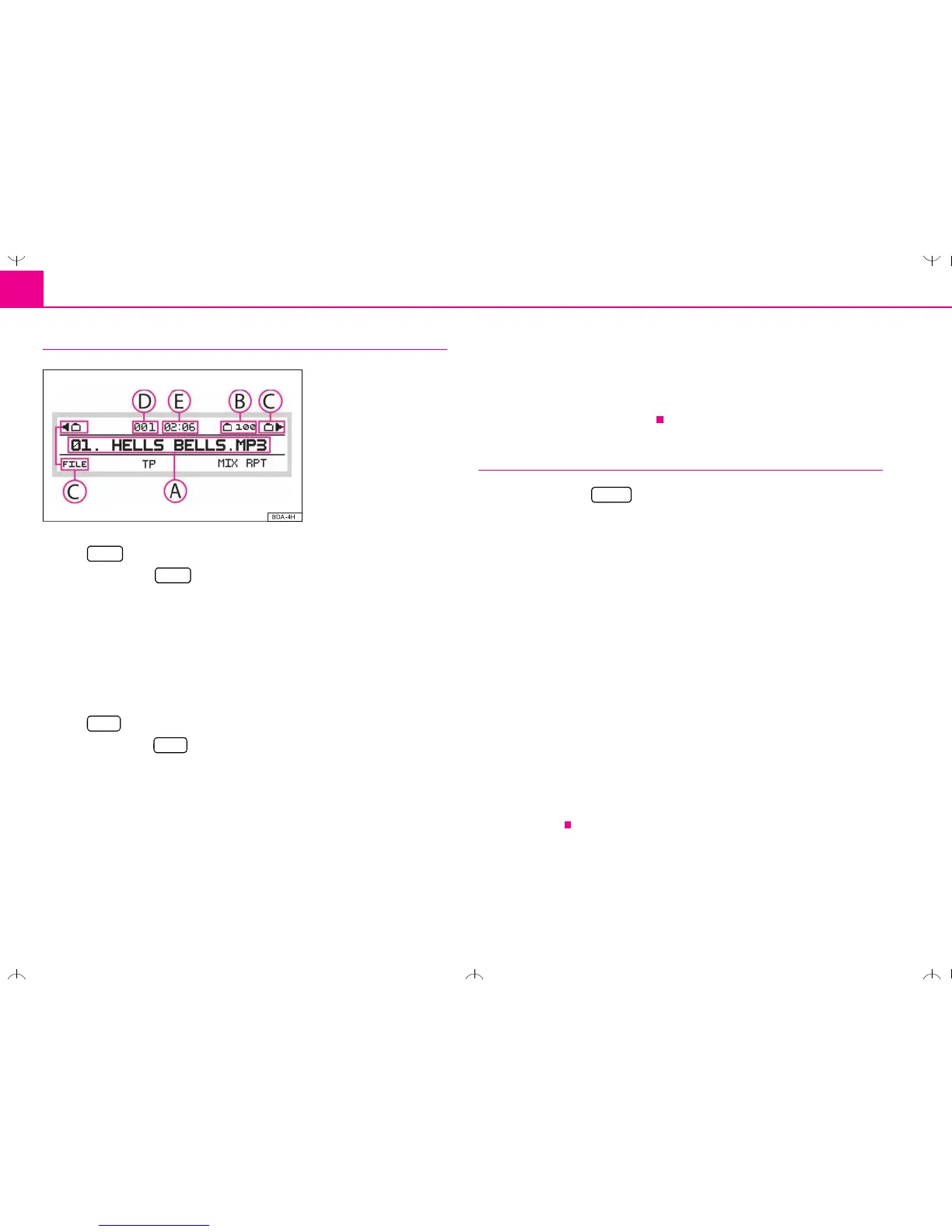 – Press the station key ID3 INFO, the additional information for the