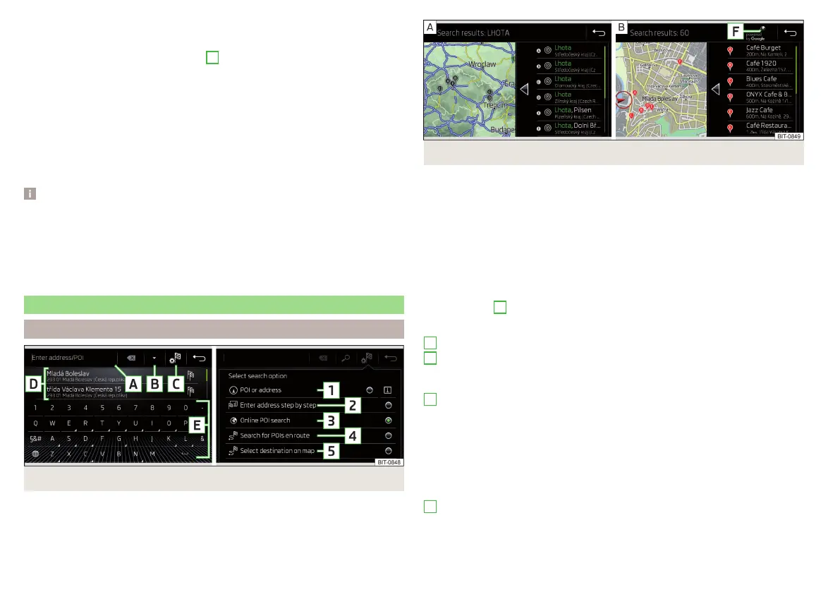 Fig. 229 List of destinations found: in the navigation data/online