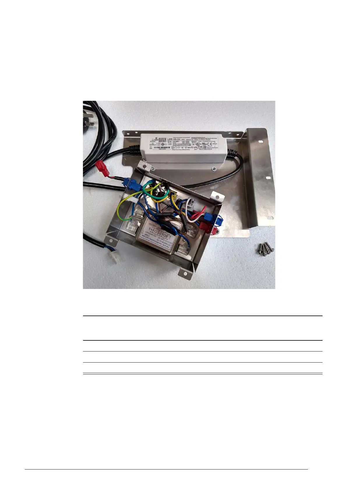 The cartridge electrics panel assembly contains the light power supply, EMI filter and panel