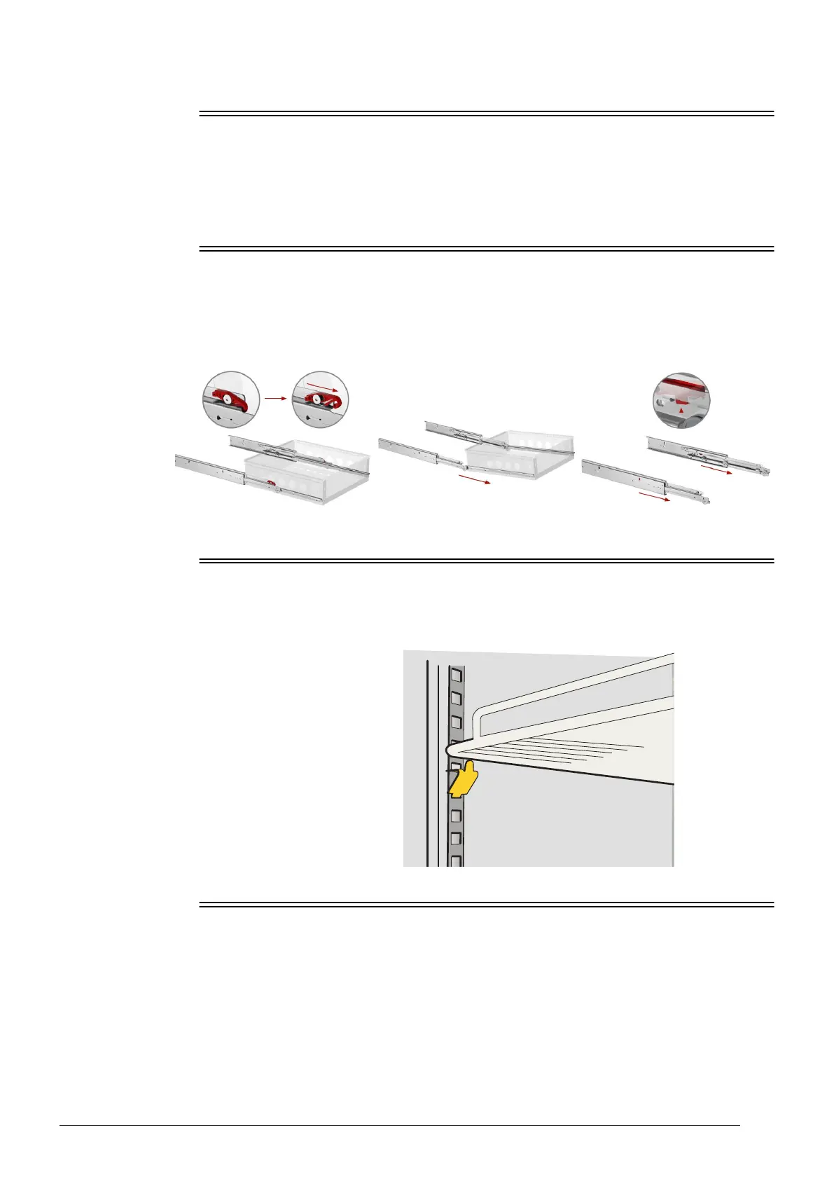 Where fitted, remove the drawers when cleaning. Pull the drawer out of the cabinet, release