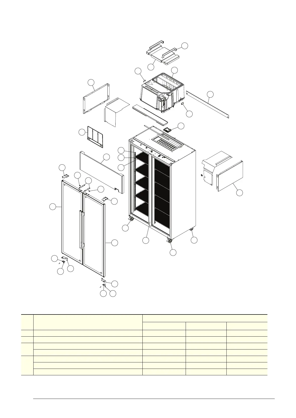 Table 14: Parts – Cabinet assembly: TME1000 series, SKT1000 series