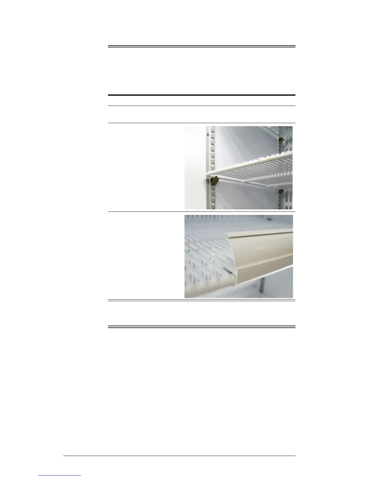 2. Establish the desired position for the shelves and securely engage a shelf