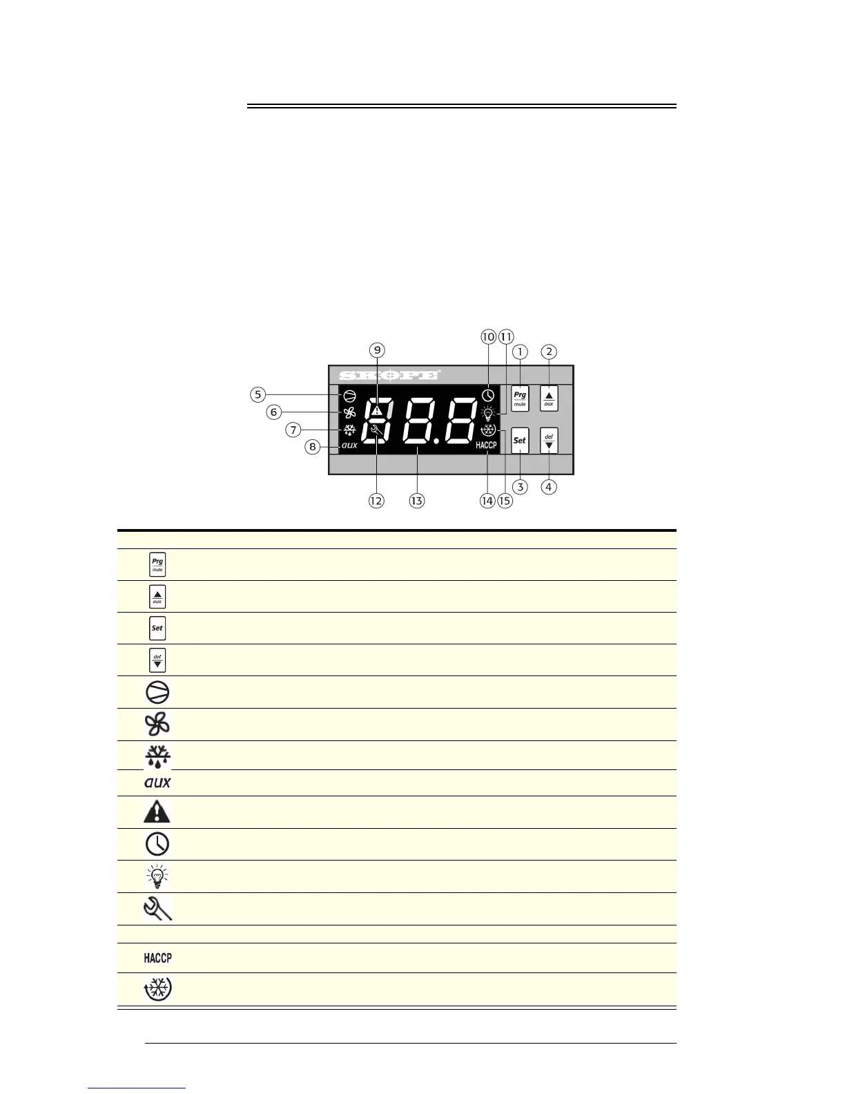 Prg / mute: To initiate program sets, press for 5 seconds. Mutes the audible alarm (buzzer).
