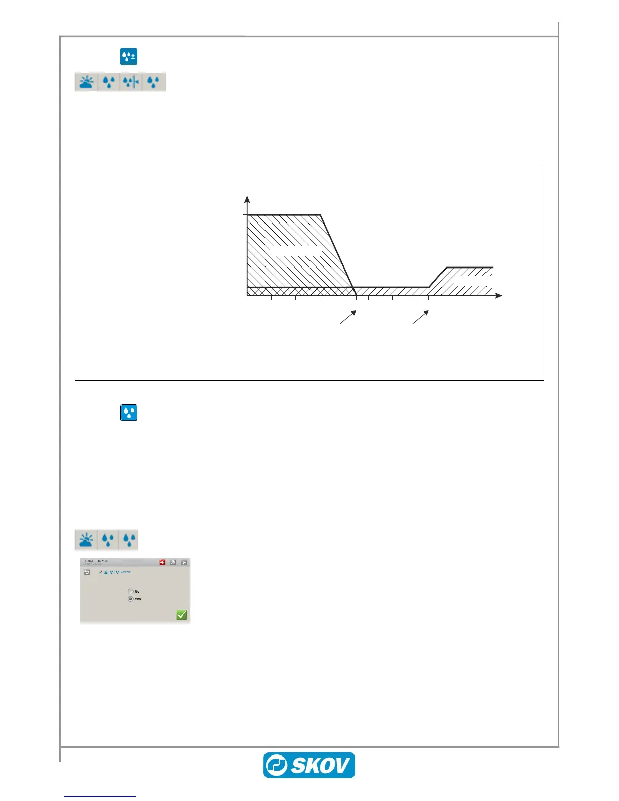 When the inside temperature is below the Temperature setpoint, DOL 53X is factory preset to limit humidification.