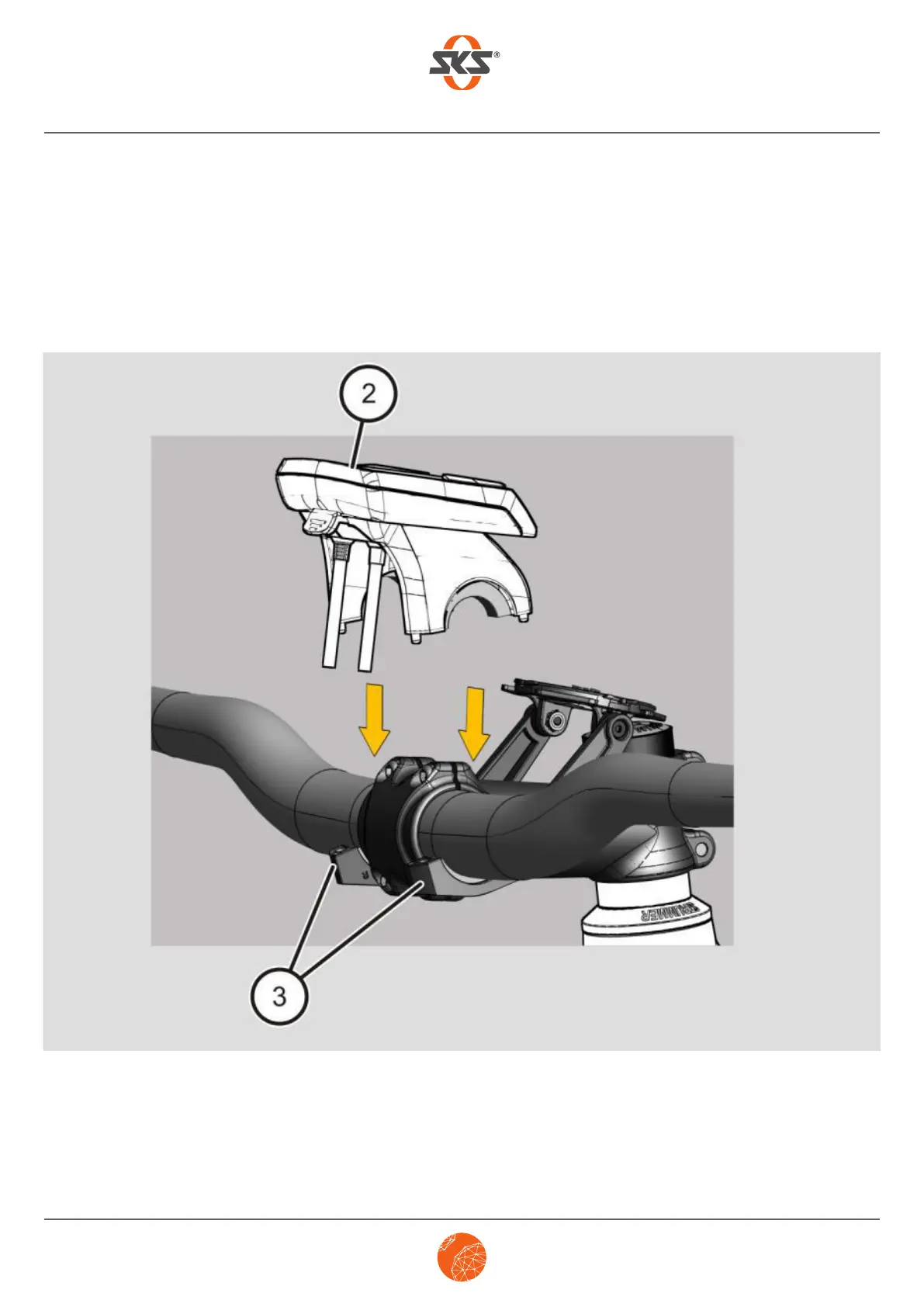➤ Affix the e-bike’s on-board computer (2) and the COMPIT/E’s clamping arms (3) on the