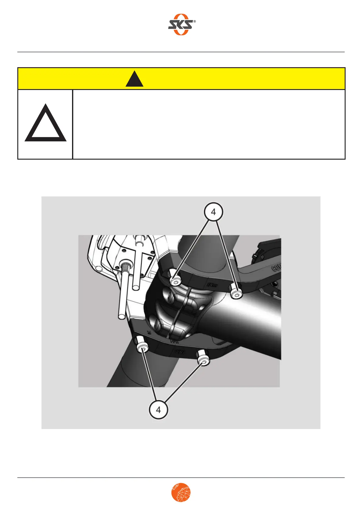 ➤ Mount the COMPIT/E on the handlebar with a torque wrench. To do so, tighten the screws (4) evenly
