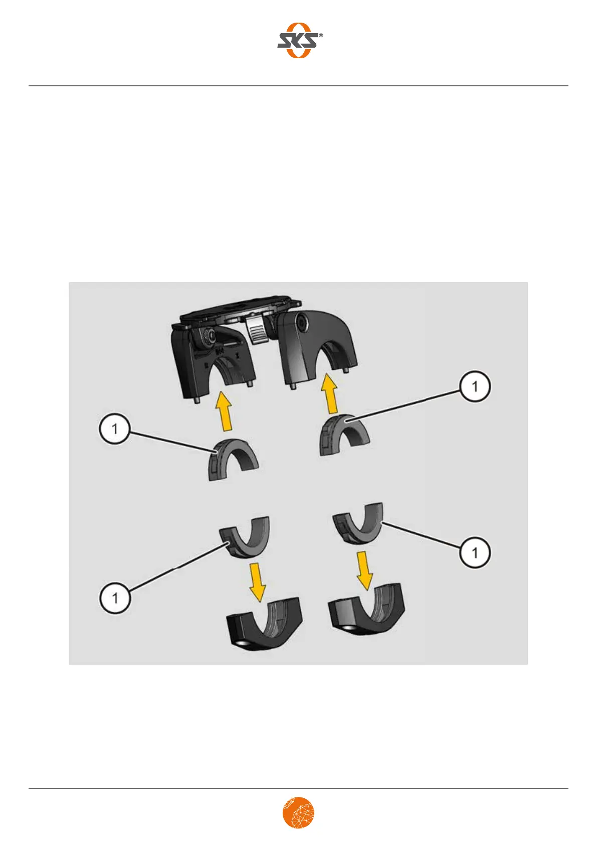 Insert the required rubber adapters (1) in the clamping arms in the direction of the arrows
