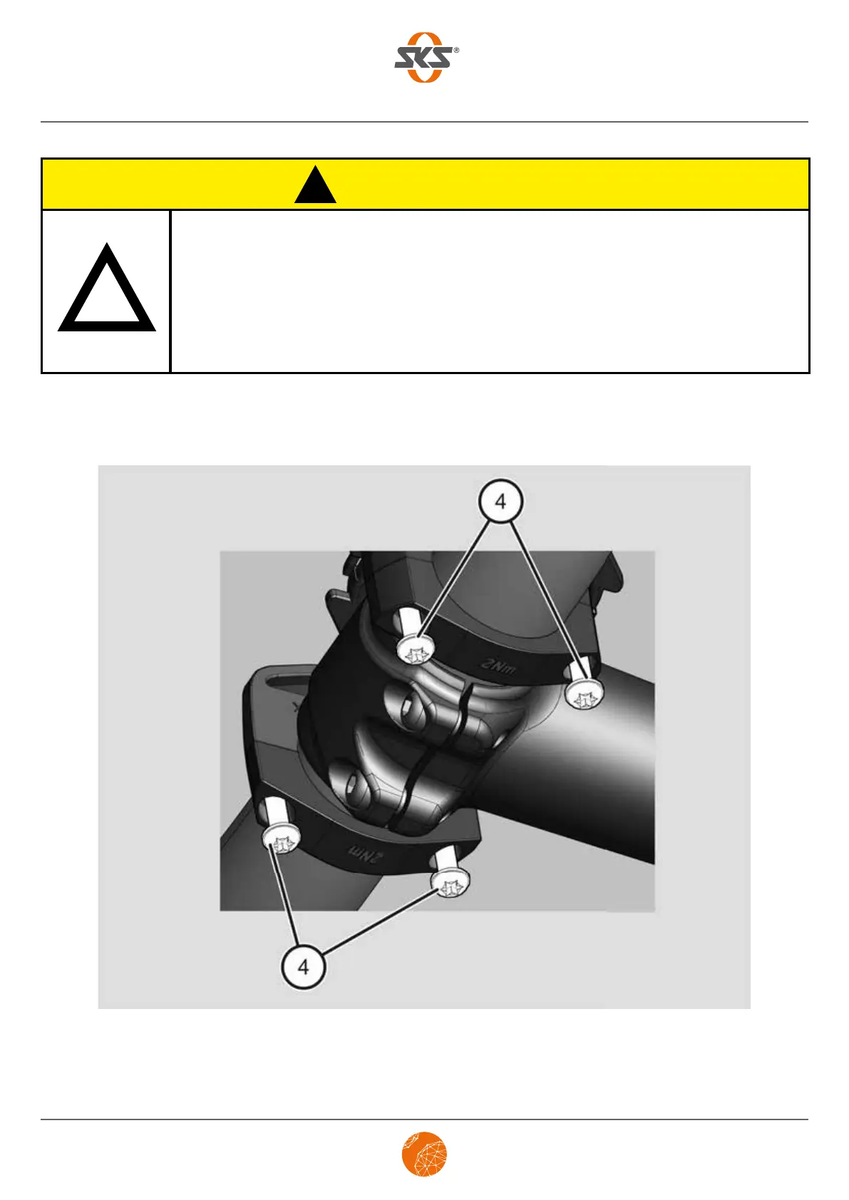 (4) alternately and uniformly applying the torque that is stated on the clamping arms (2 Nm).