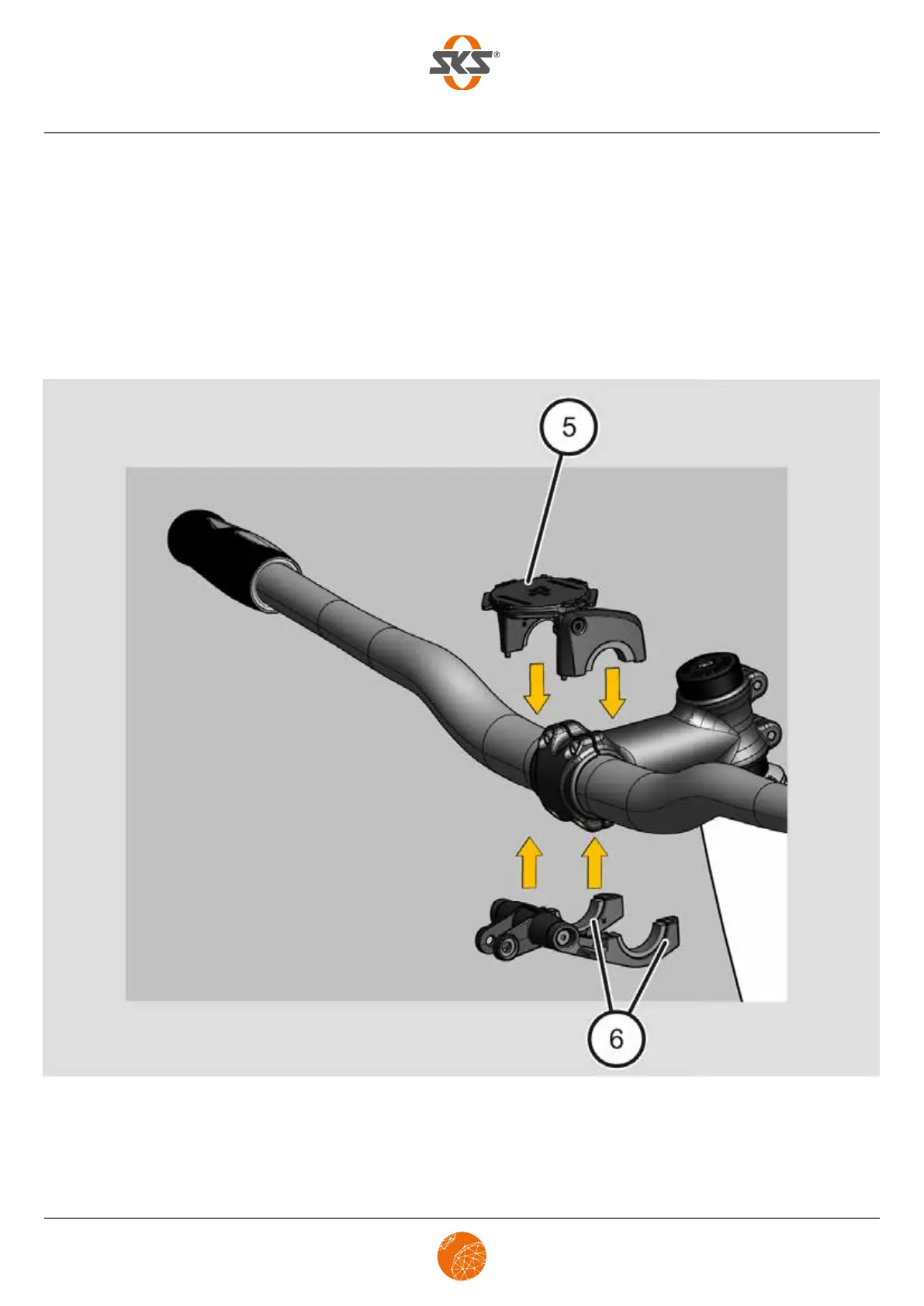 ➤ Mount the COMPIT (5) with the clamping arms (6) on the handlebars of the bicycle.
