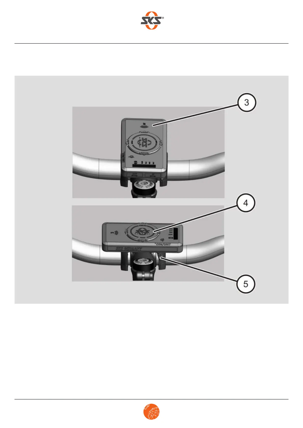 Depending on how you turn it, the +COM/UNIT is mounted vertically (3) or horizontally (4).