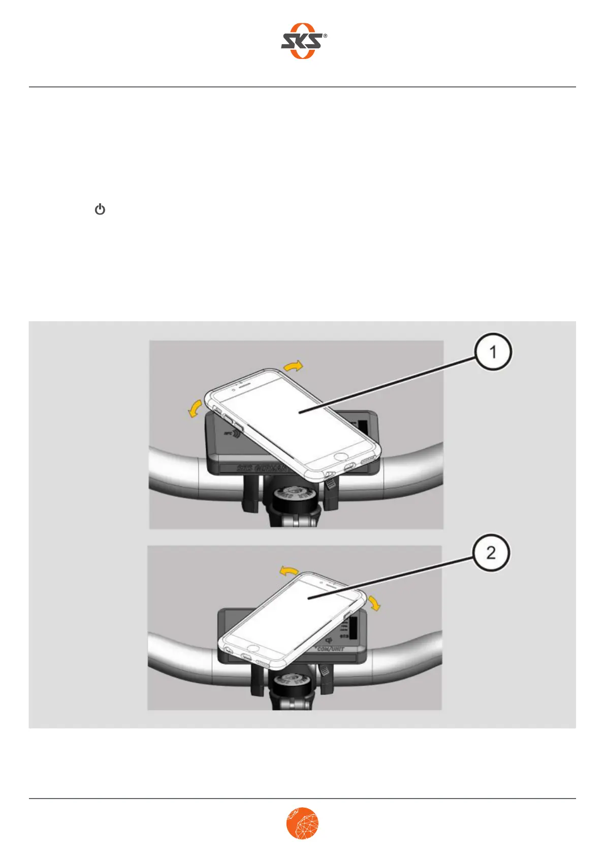 ➤ Place your smartphone on the +COM/UNIT’s Qi docking station (as shown in 1 or 2) and turn it