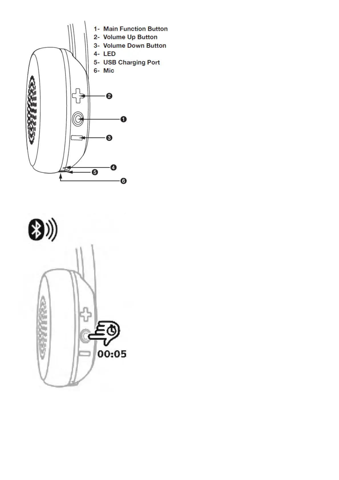 Un-pairing – Press and hold the volume up and volume down buttons until you hear two short tones.