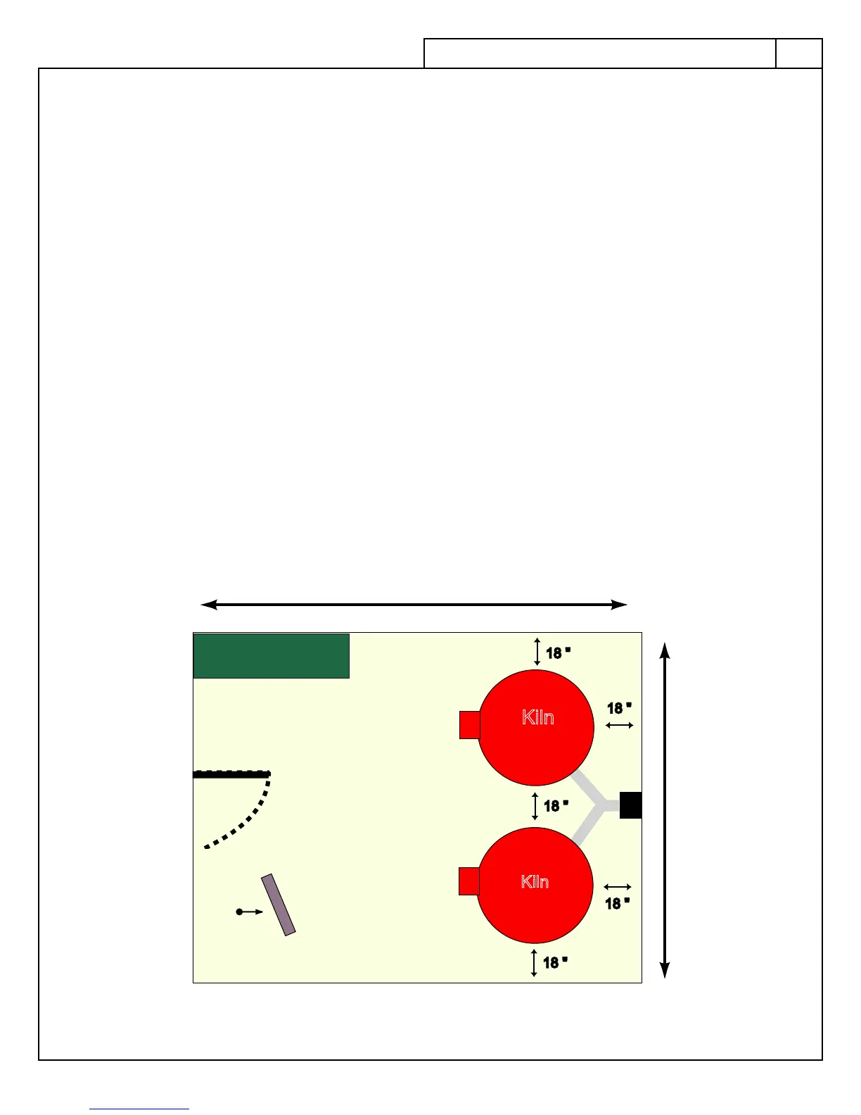Allow a MINIMUM 18 inches (46 cm) of space between your kiln and adjacent walls, other