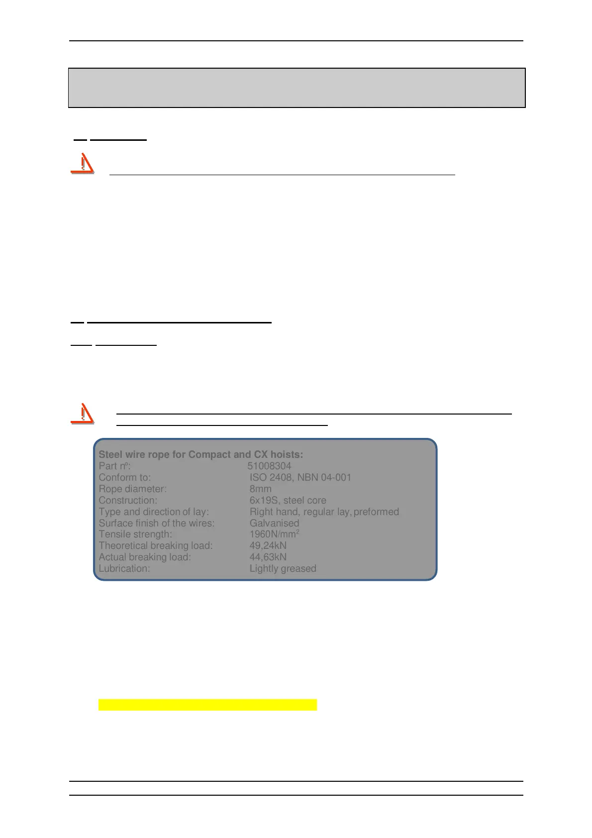Always use a wire rope of the correct diameter (8 or 9mm), construction and length.