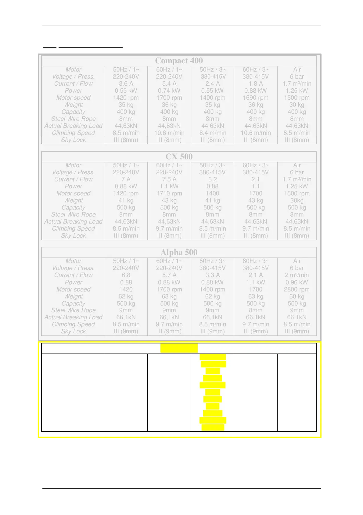 Sky Climber Alpha 800 - 2.2.1 Technical Specifications