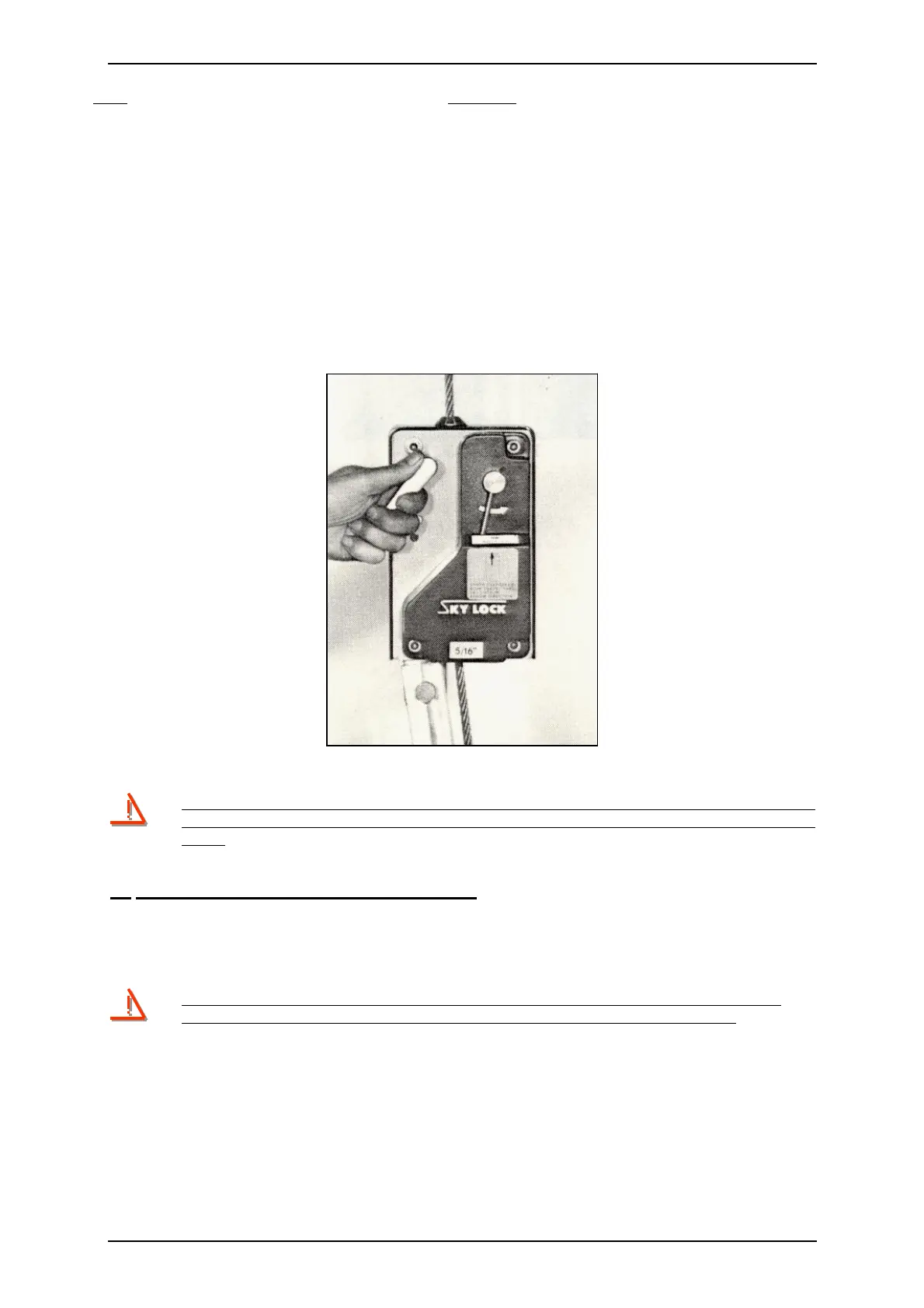 equipment and wire rope below the Sky Lock brake. If satisfactory, operate hoist in up direction 5 to