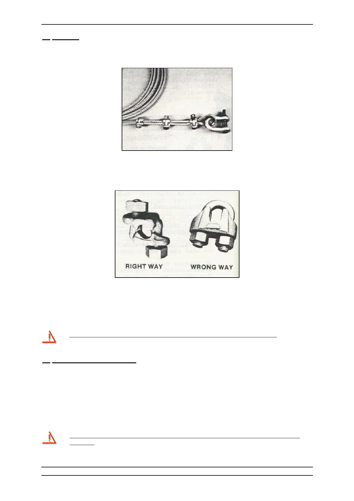 Use only aluminum Talurit wire rope clamps or Deka wire rope clamps (see Figure 4.6) with a