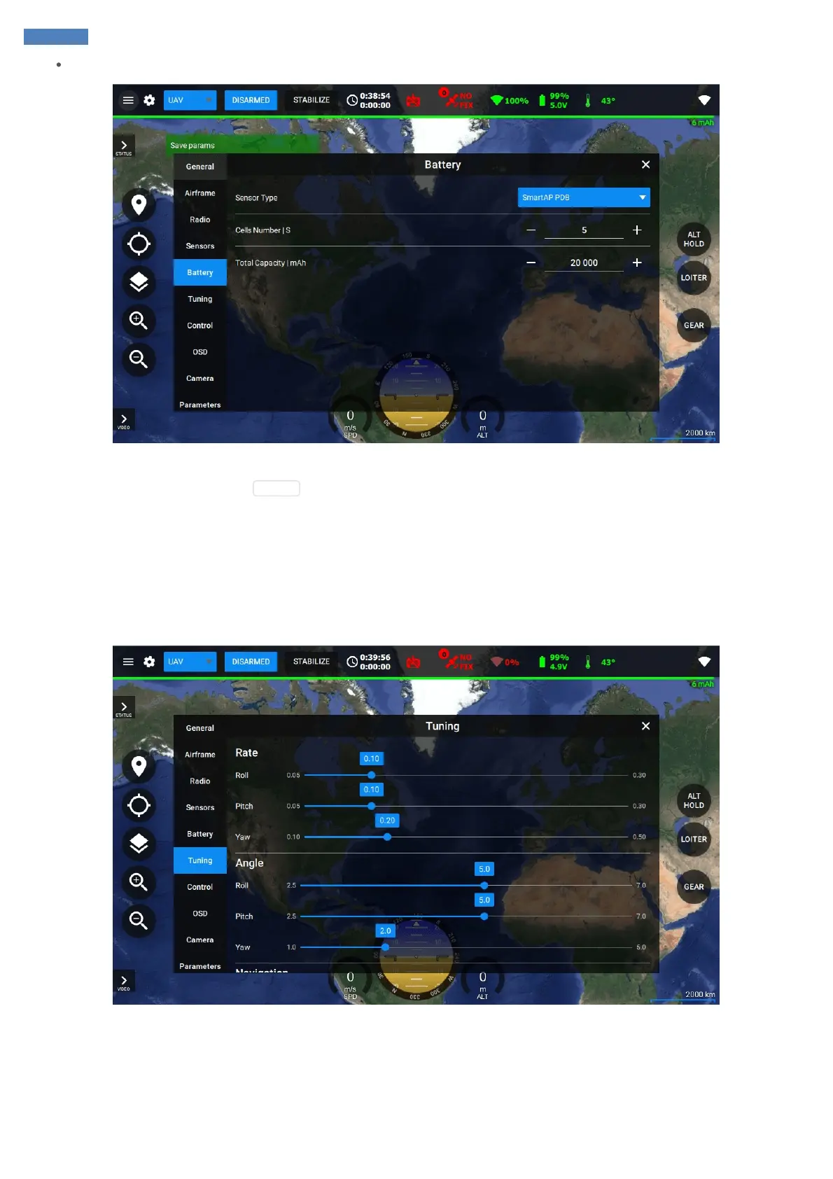 follow desired trajectory) control algorithms include two loops: angle and rates control and position and velocity control. By default the gains