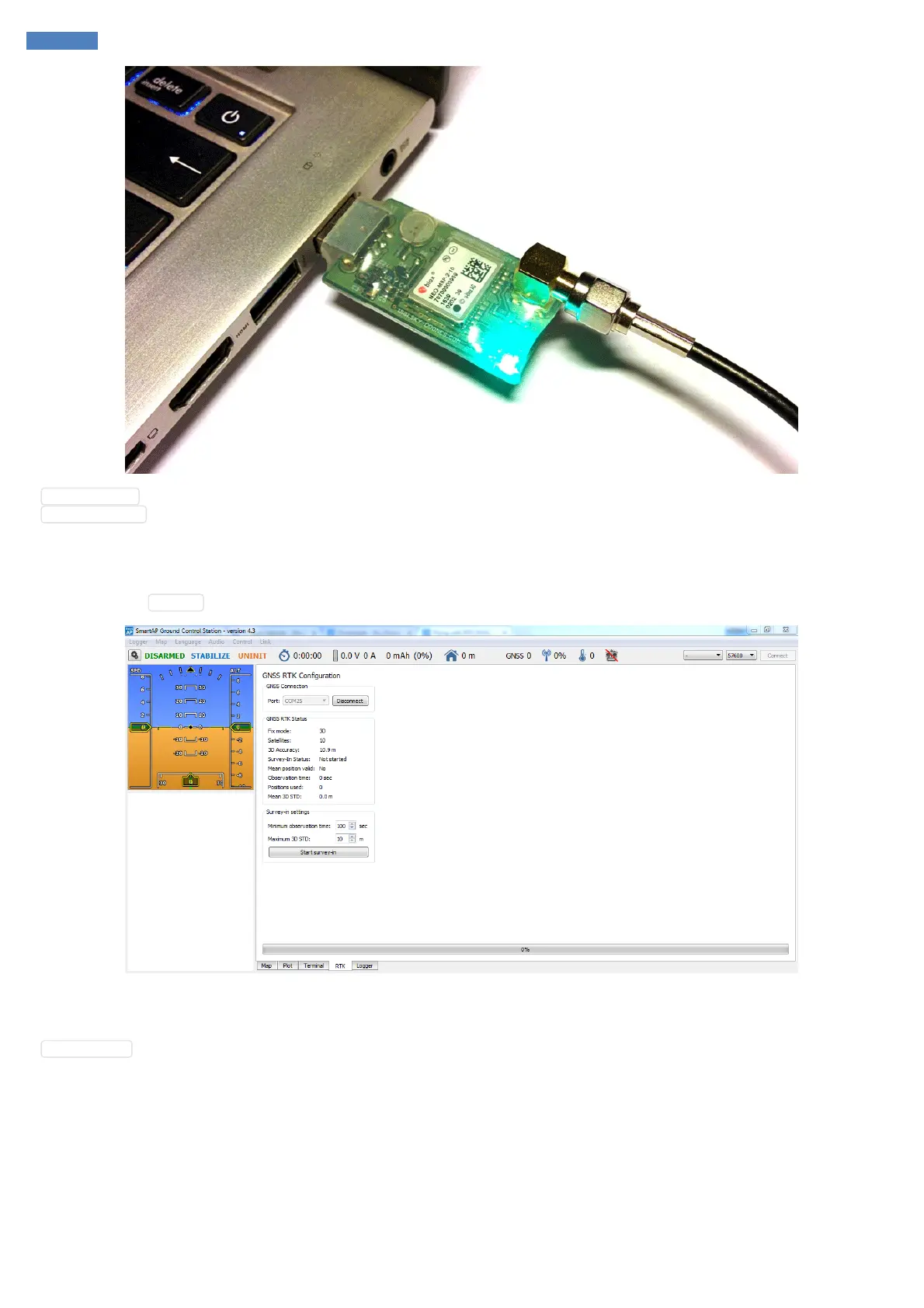 First of all open SmartAP GCS and connect to the drone. Then go to RTK tab in bottom part of the Main Window. Choose the COM port of GNSS