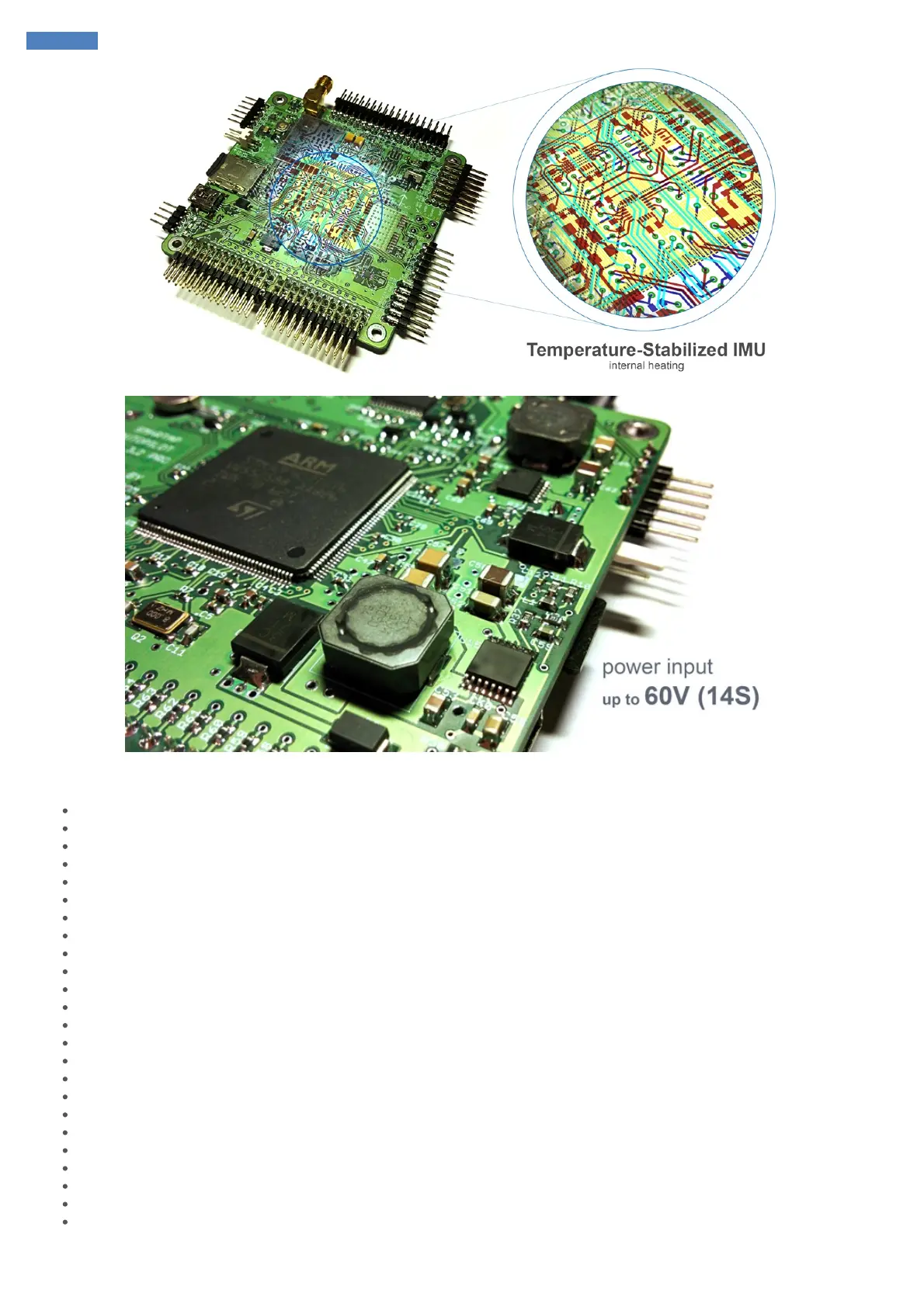 Compact board size of 8x8 cm (3.15"x3.15"), weight 60g, 6 layers PCB design