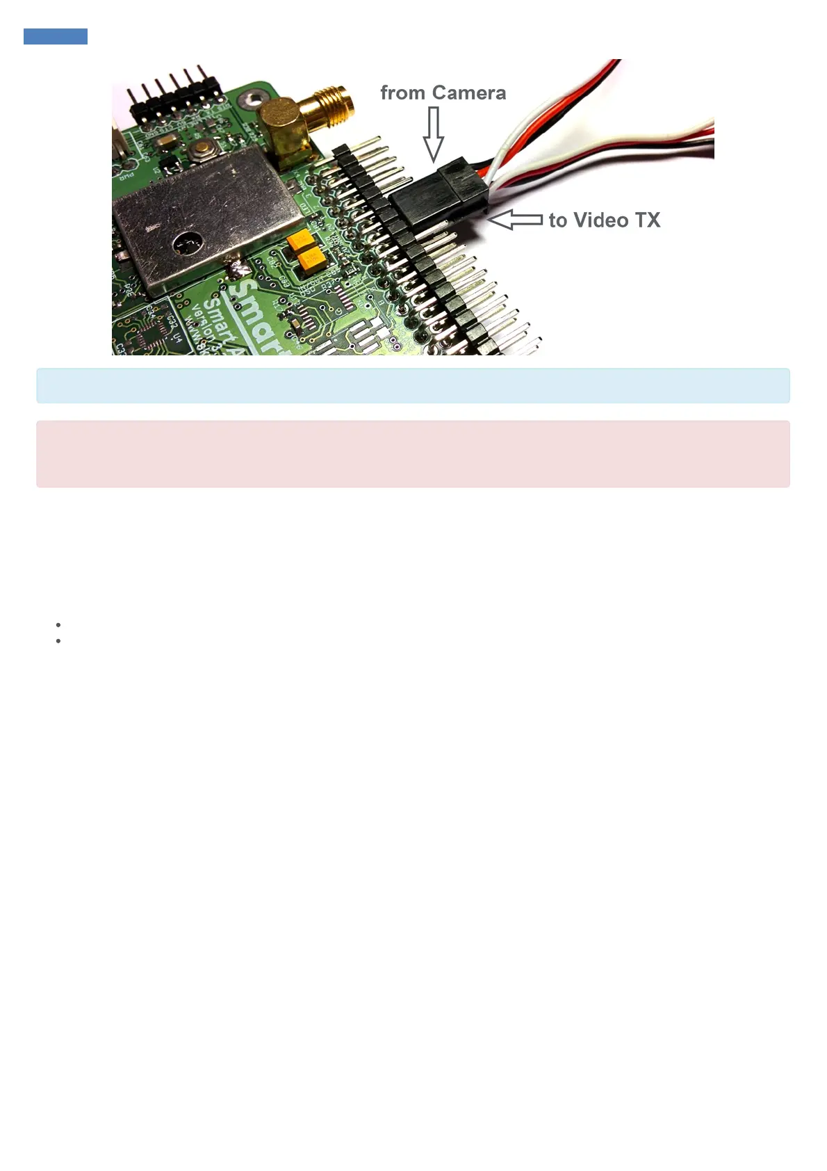 Check the voltage ratings for your video camera and video transmitter! SmartAP outputs 12V and normally Camera and Video TX require 12V