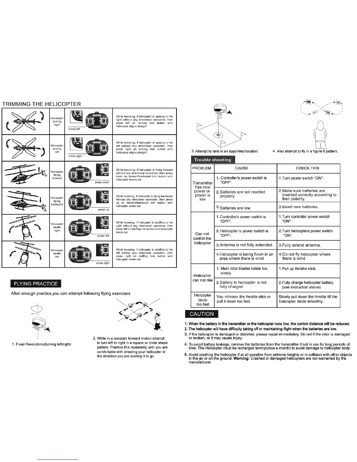 Sky Invaders DVR-X HELI - Helicopter Trimming and Troubleshooting; Trimming the Helicopter; Flying Practice Exercises; Troubleshooting Guide