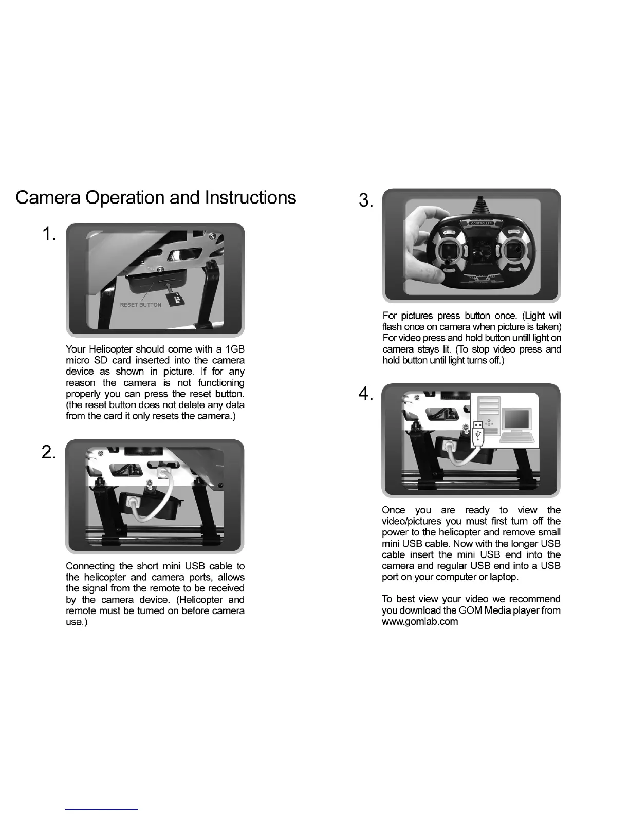 Sky Invaders DVR-X HELI - Camera Operation and Instructions; Camera Reset Button; Taking Pictures and Videos; Viewing Captured Media