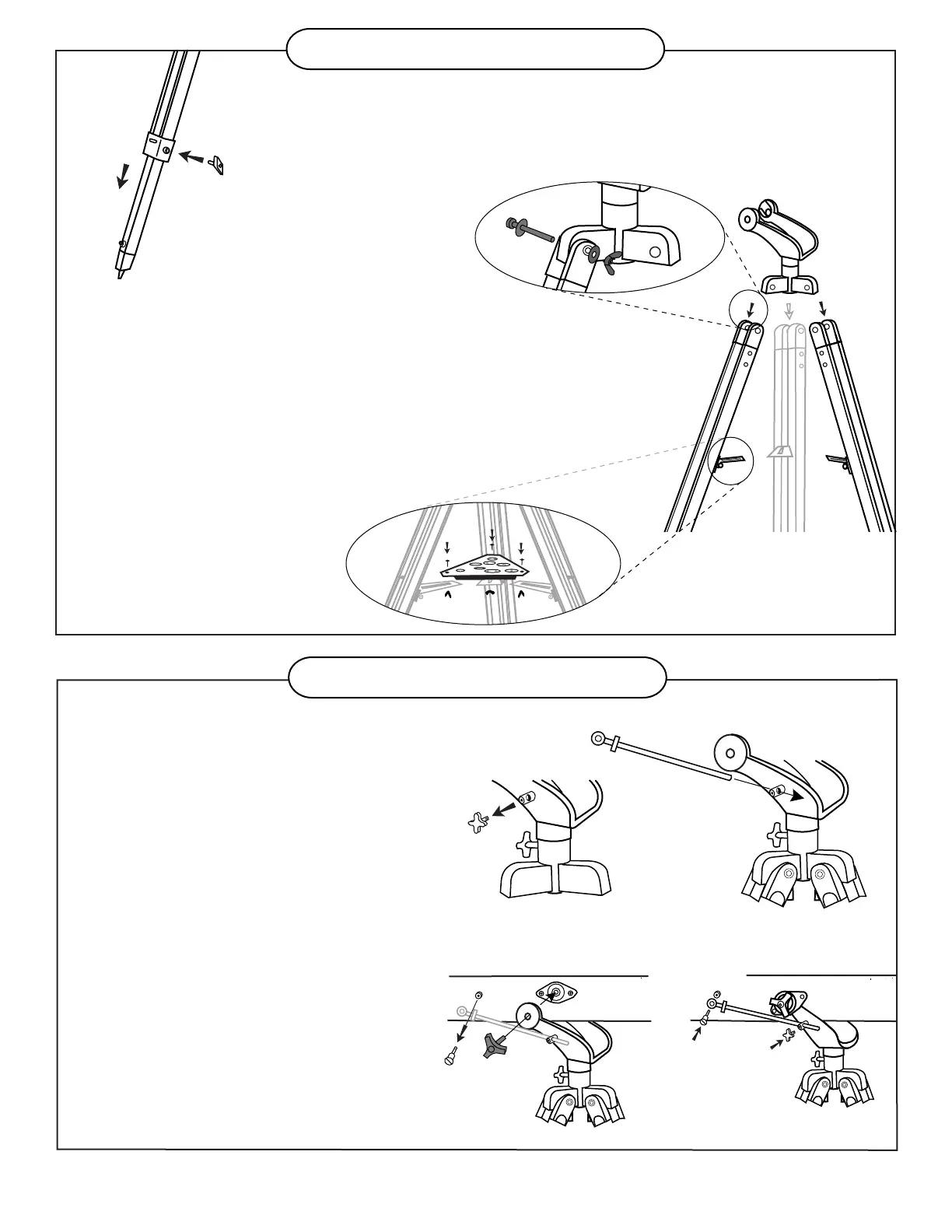 3) Fasten the top of each tripod leg to the bottom of the yoke mount
