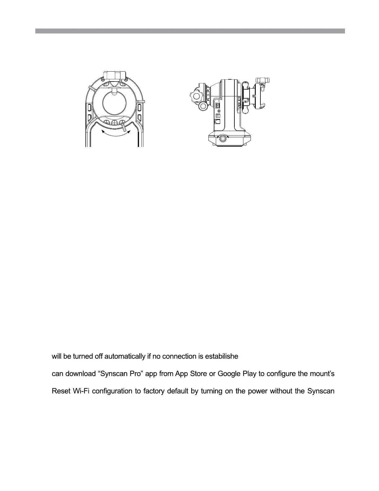User must connect to the mount’s Wi-Fi within 15 minutes after turning on power. The Wi-Fi