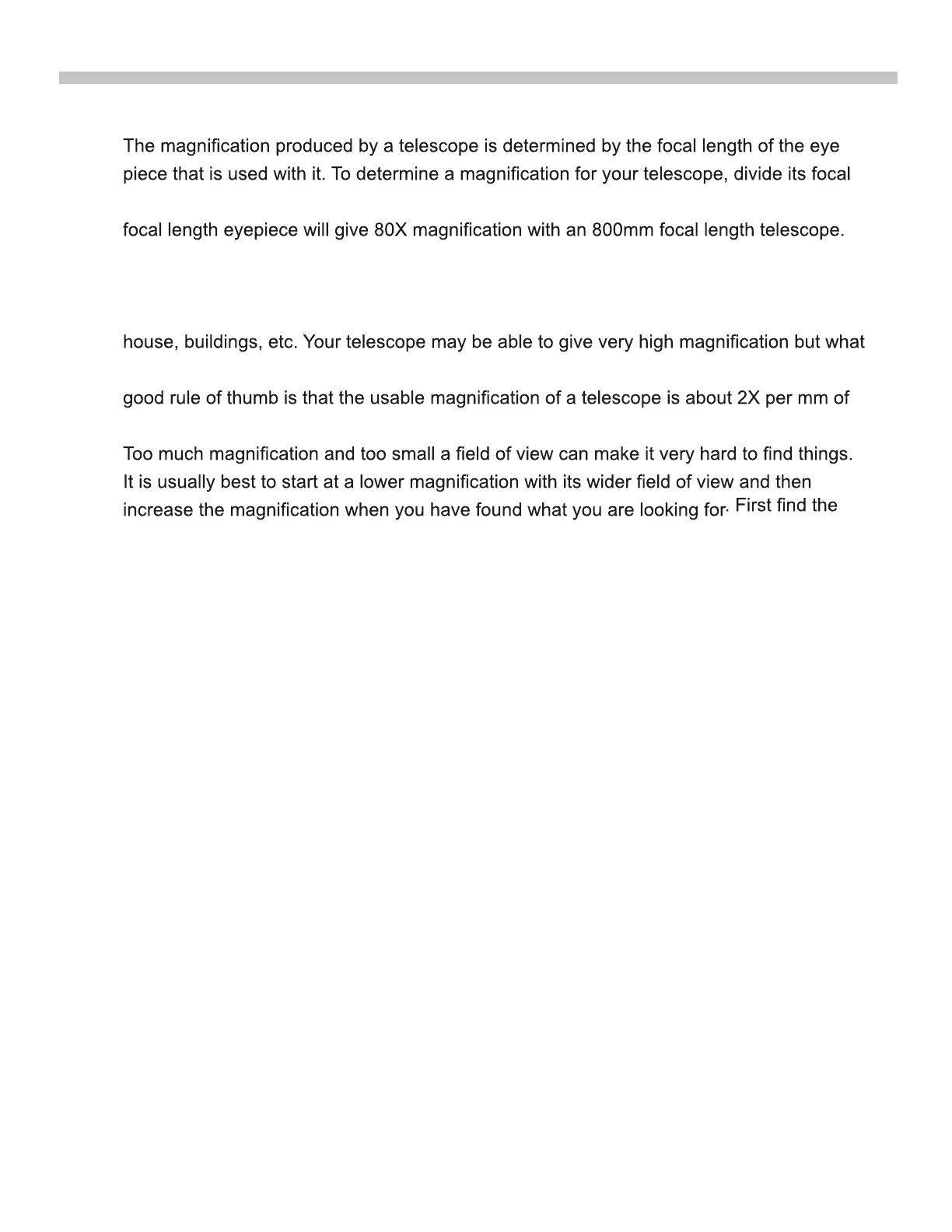 length by the focal length of the eyepieces you are going to use. For example, a 10mm