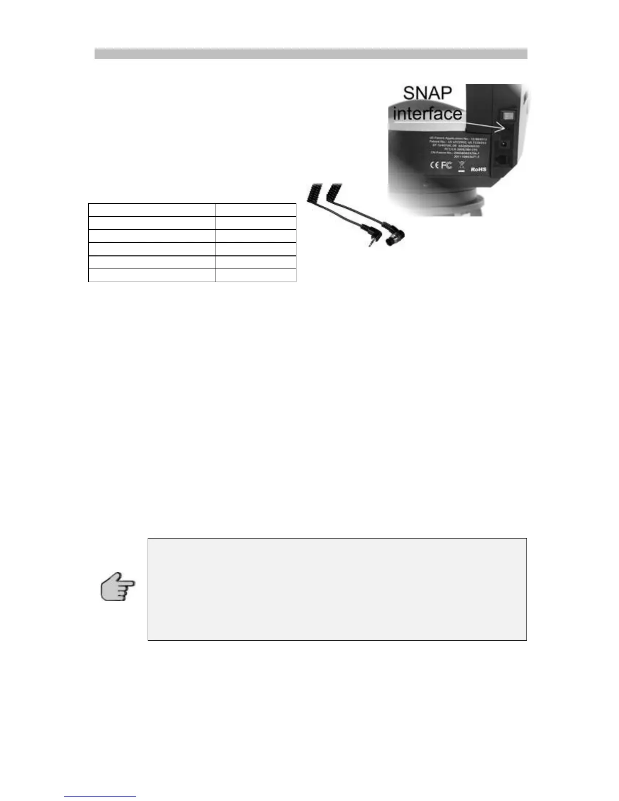 connect to the mount's SNAP port with a proper cable. The