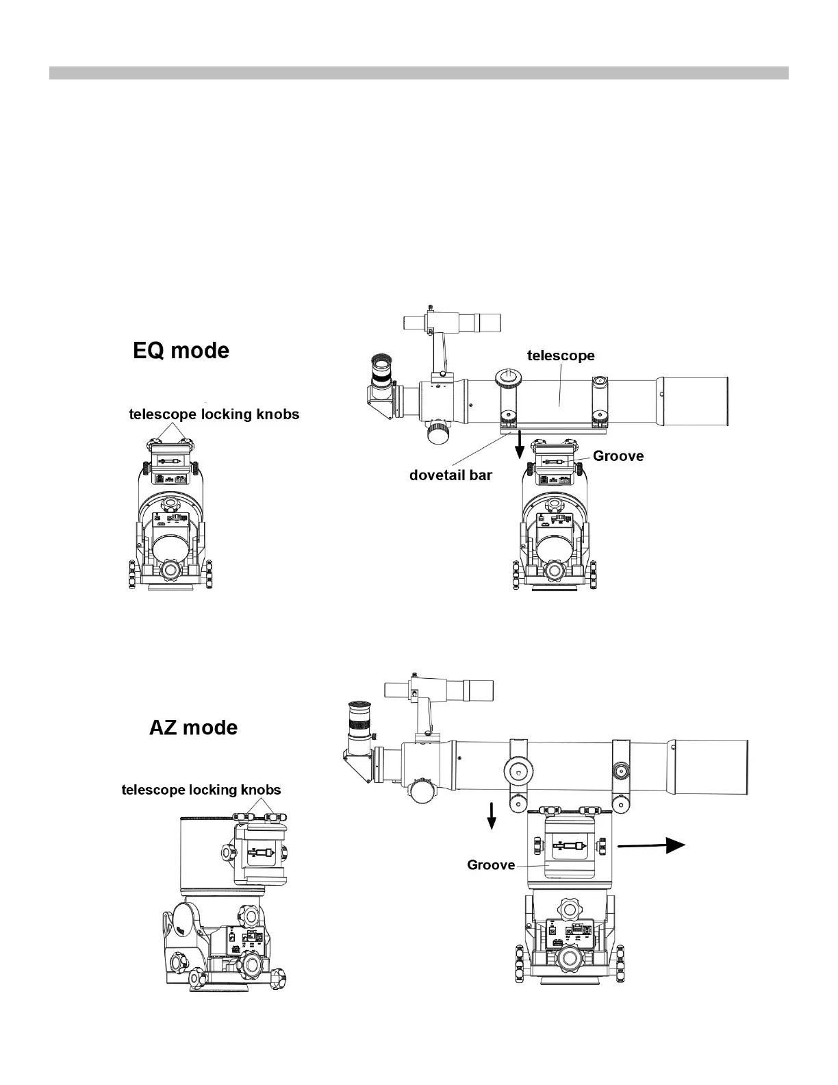 Warning: Keep supporting the telescope until you are sure that it has been firmly locked in the saddle.