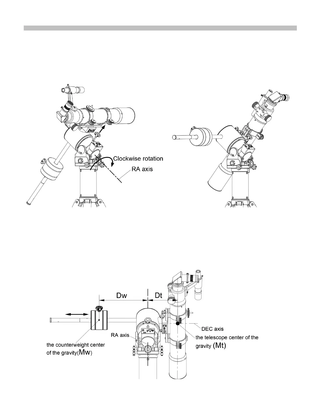counterweight. Keep the counterweight locked at the furthest position if the telescope is too heavy to get a full