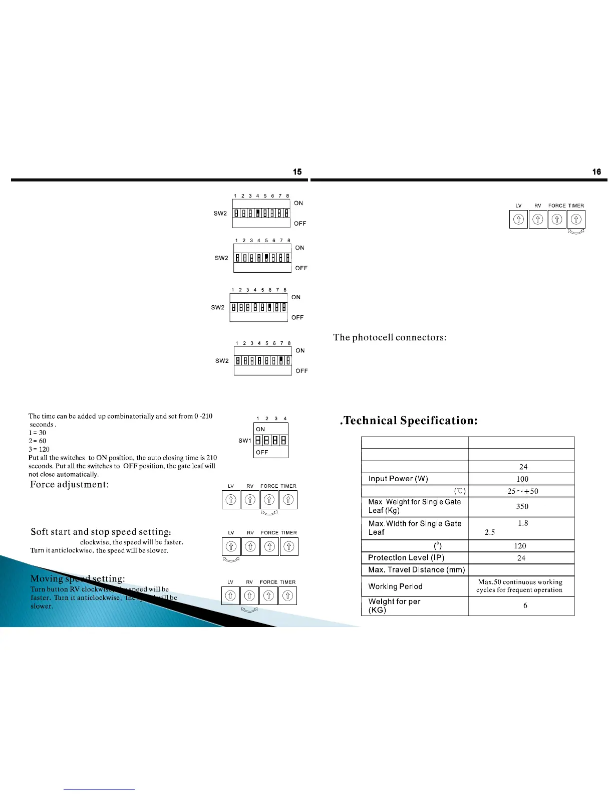 on; When DOOR2 and – are connected, both gear motors will wor k and DL4 LE D will turn on.