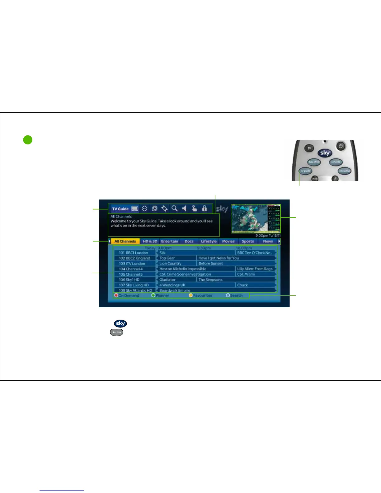 You control what you watch on your Sky±HD box by browsing the on screen Sky Guide using your remote.