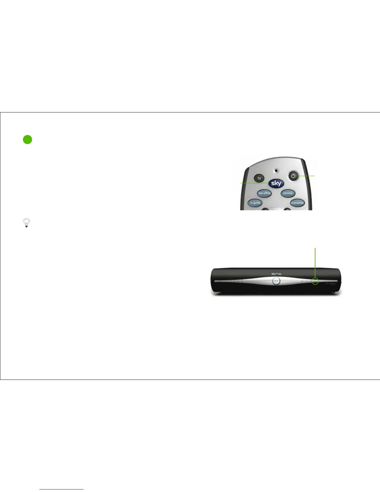 Press the Sky button on your Sky±HD remote to turn the box on,