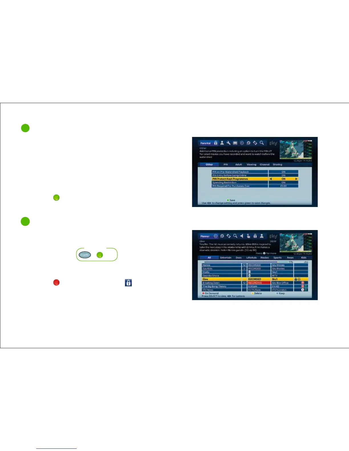 2 Highlight PIN Protect Kept Programmes and use the left/right