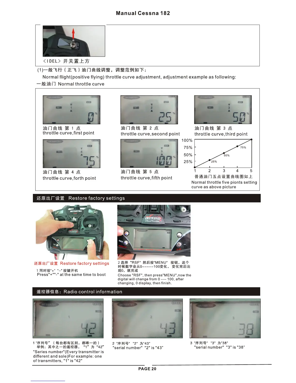 SkyArtec Cessna 182 - Throttle Curves and Settings Restoration; Normal Flight Throttle Curve Adjustment; Restore Factory Settings and Radio Information
