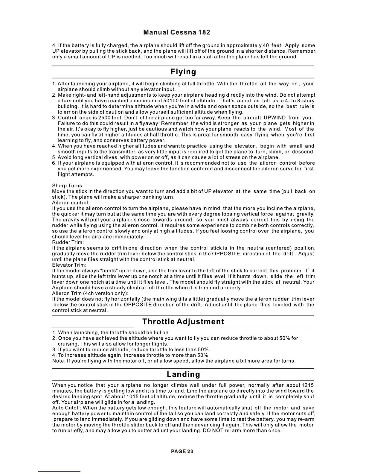 SkyArtec Cessna 182 - Flying and Landing Procedures; Flying Techniques and Throttle Management; Landing Procedures and Auto Cutoff