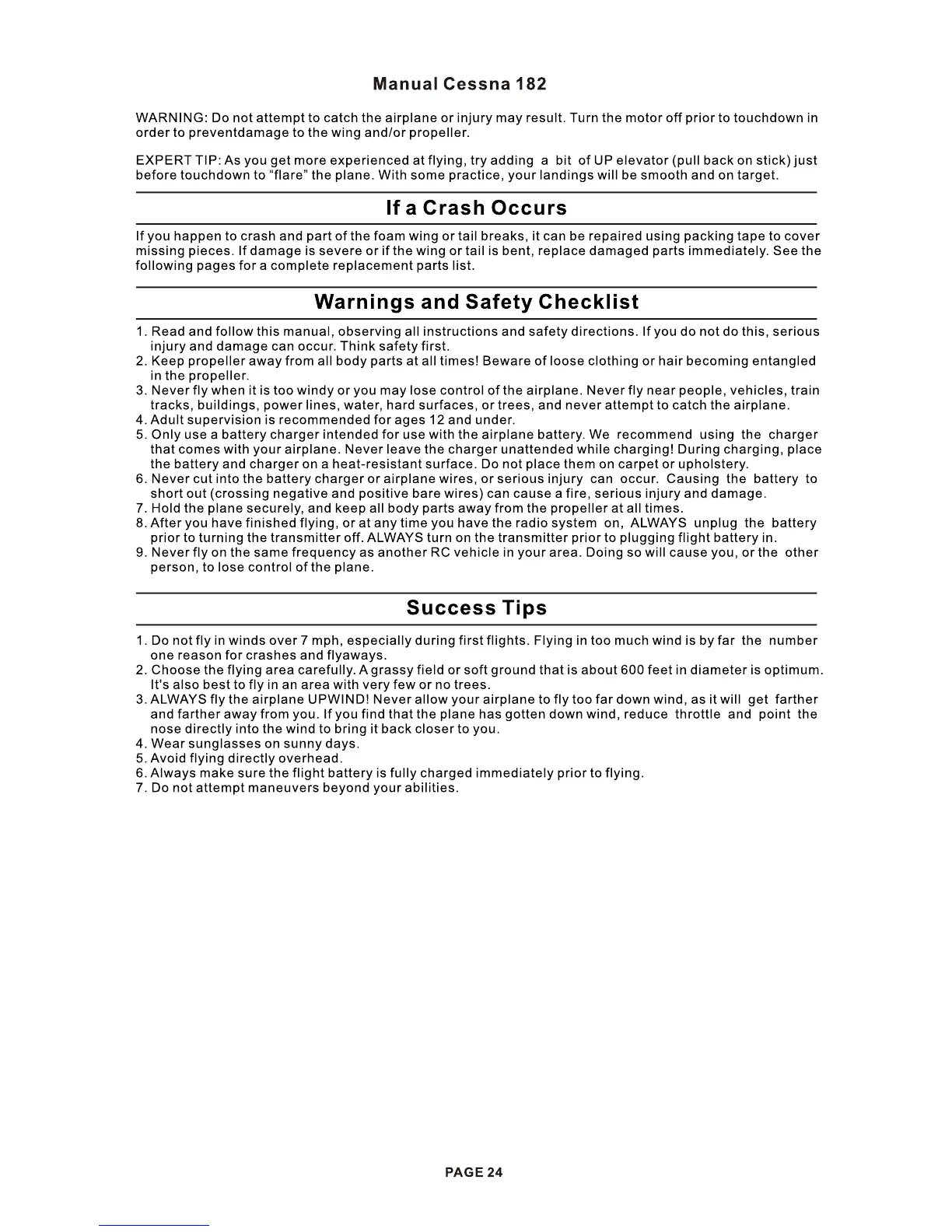 SkyArtec Cessna 182 - Post-Crash and General Safety; Crash Procedures and Safety Checklist; Flying Success Tips
