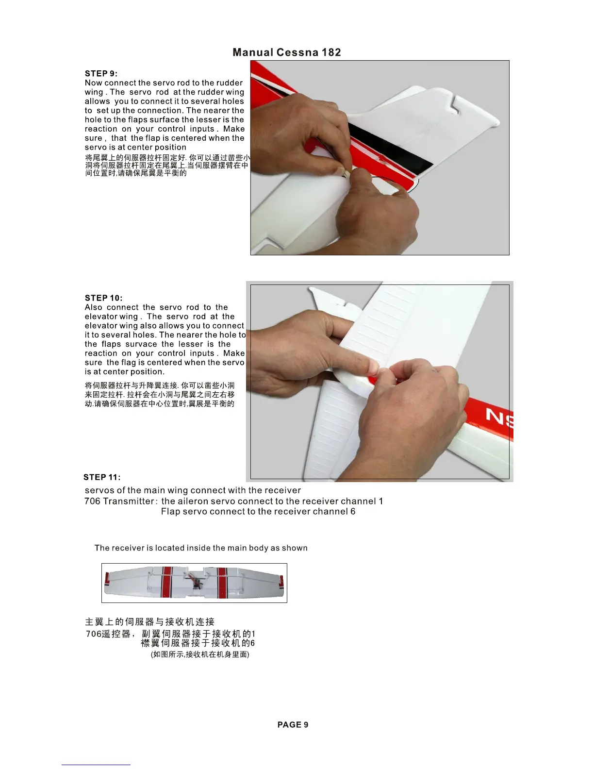 SkyArtec Cessna 182 - Steps 9-11: Servo Rod and Receiver Connections