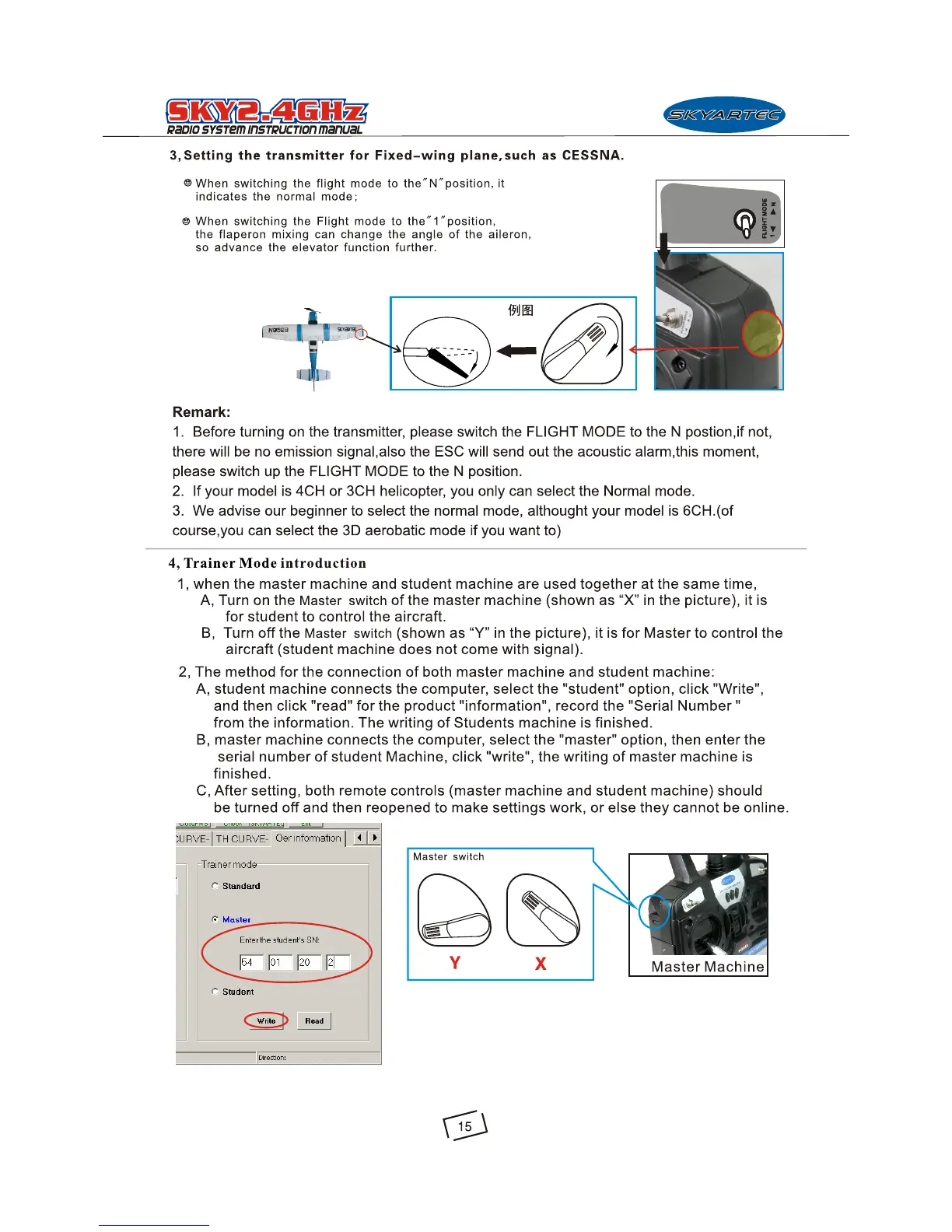 SkyArtec SKY705 - Setting the Transmitter for Fixed-Wing Plane; Trainer Mode Introduction