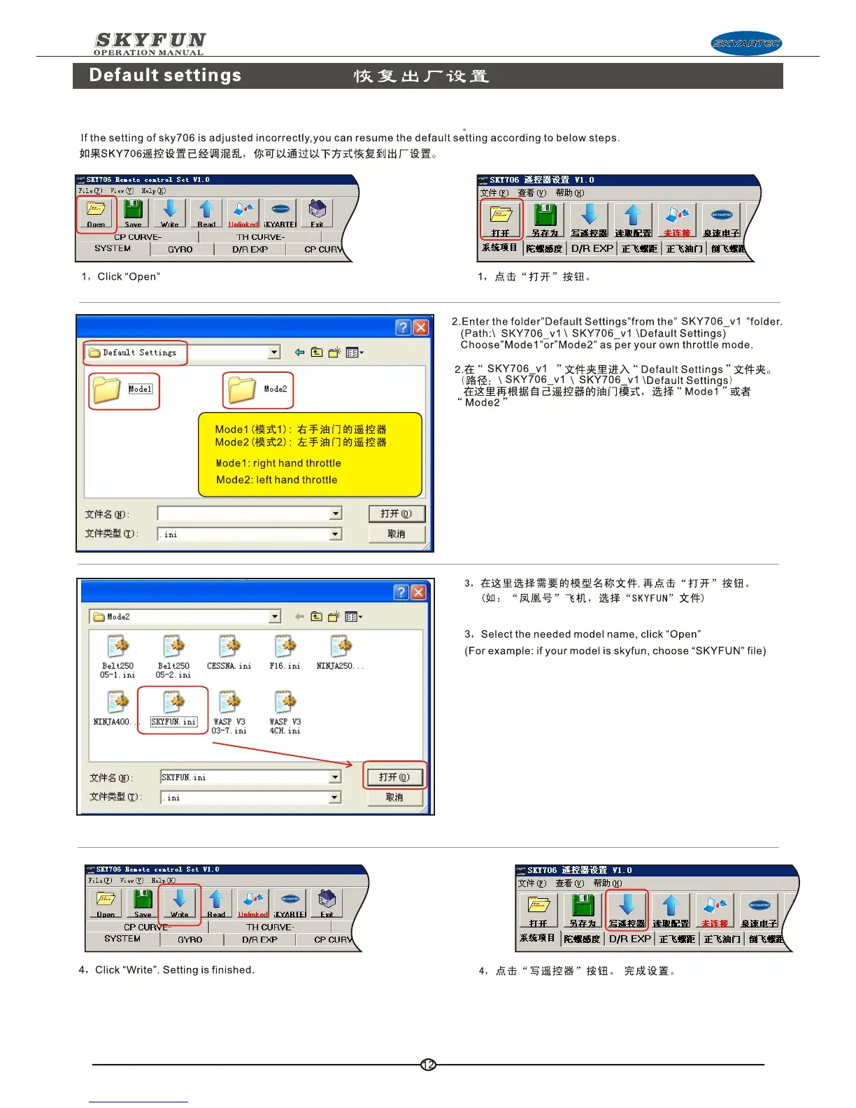 SkyArtec Skyfun - Default Settings