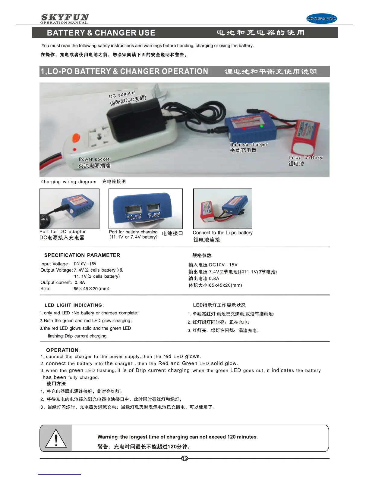 SkyArtec Skyfun - Battery and Charger Use; Li-Po Battery and Charger Operation