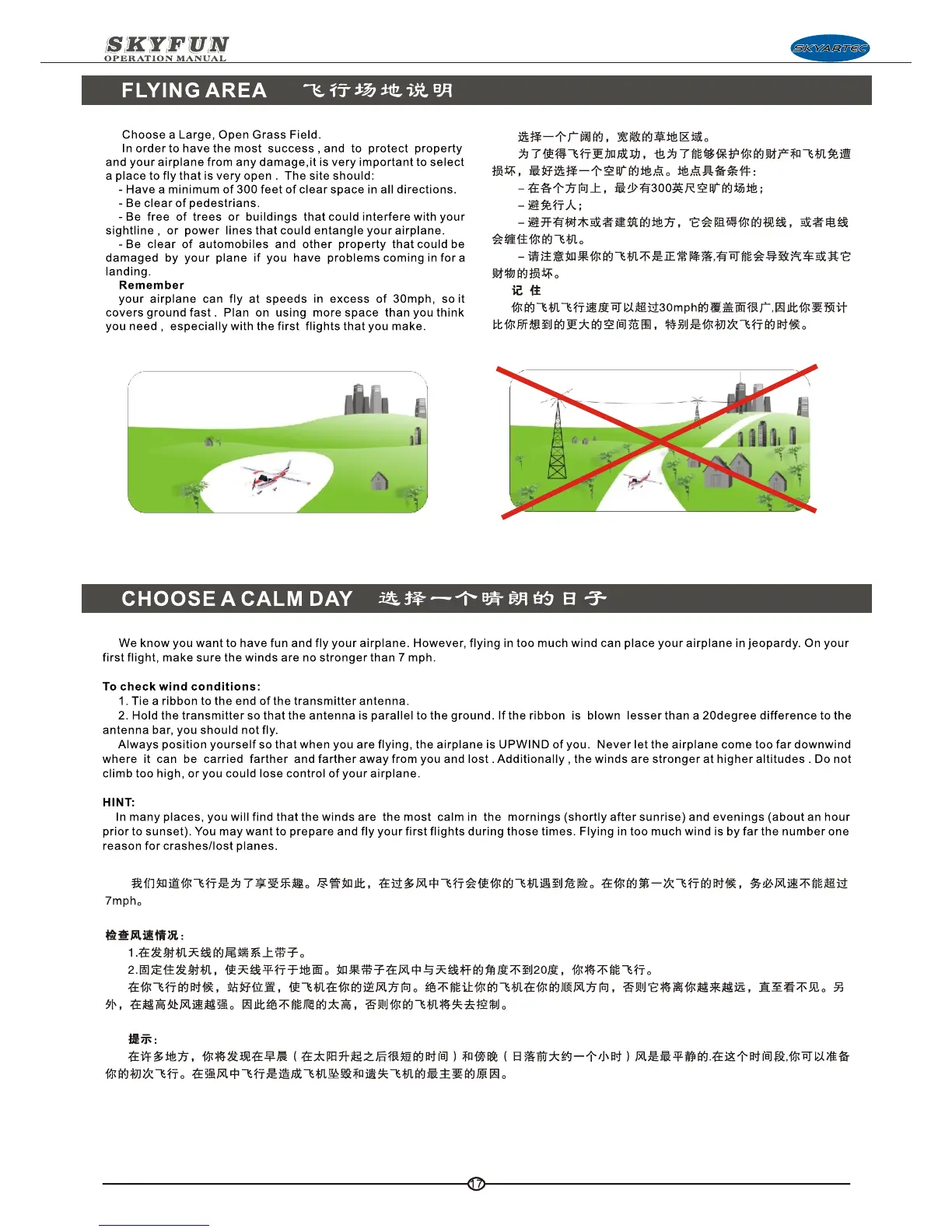 SkyArtec Skyfun - Flying Area Selection; Choosing a Calm Day