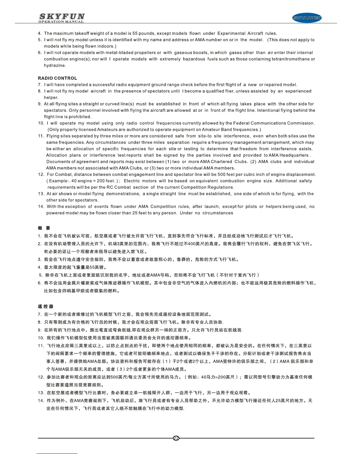 SkyArtec Skyfun - AMA Safety Code - Radio Control