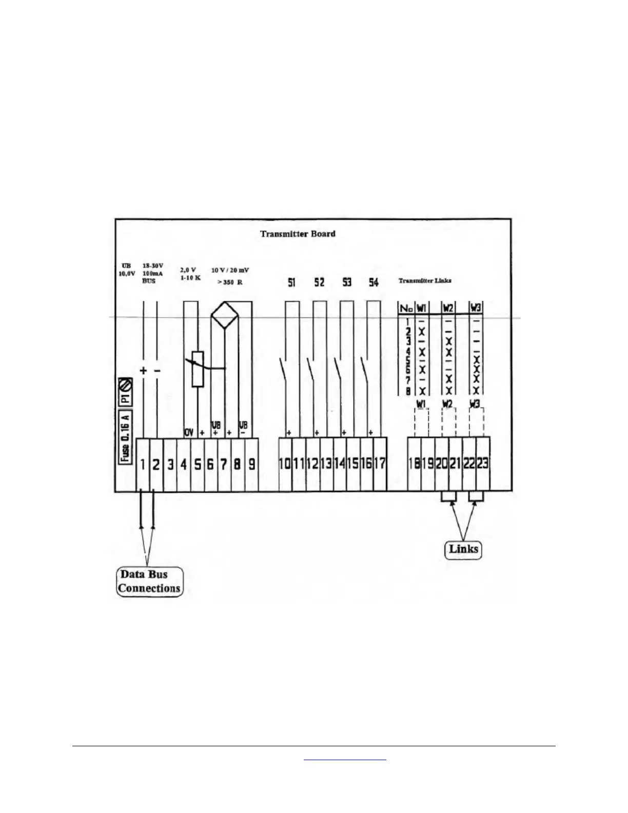 Up to 3 Links can be placed in positions WI, W2