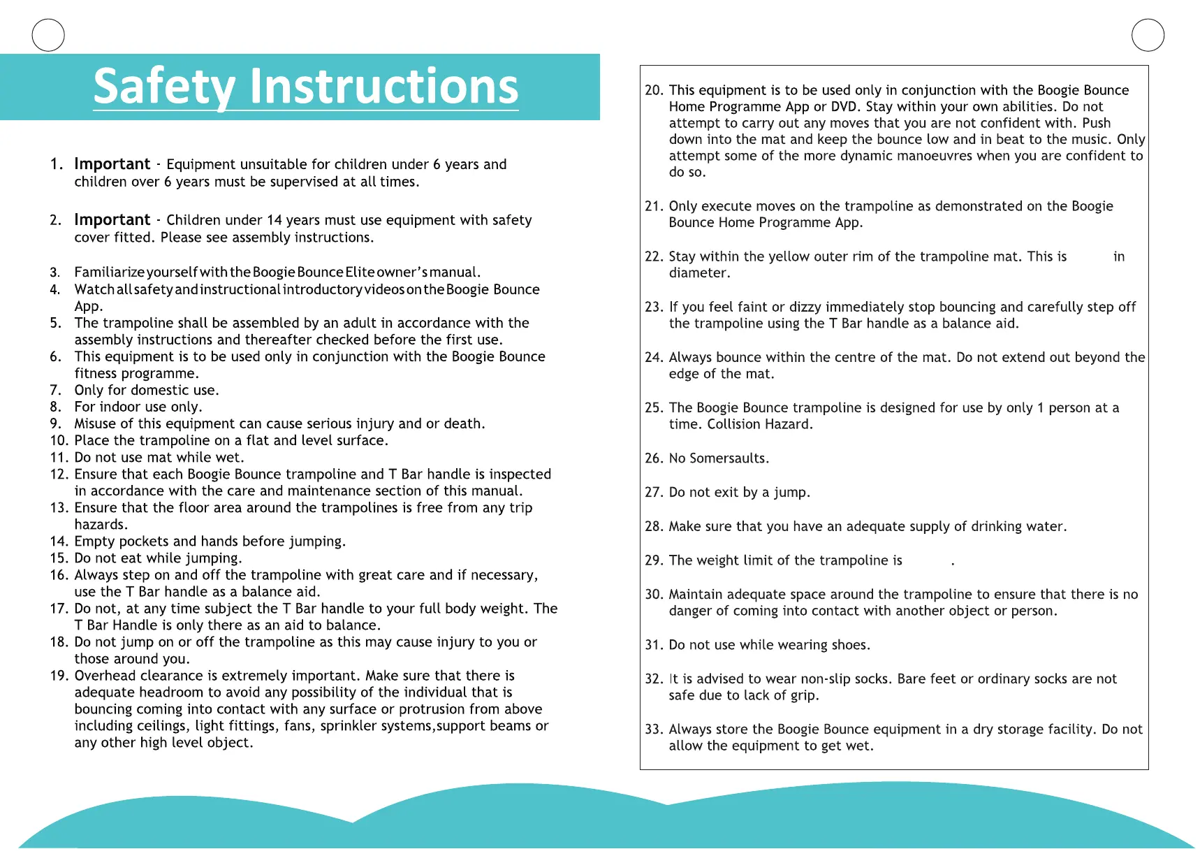 SkyBound BOOGIE BOUNCE - Safety Instructions; Age and Supervision Requirements; Misuse Hazards; Overhead Clearance
