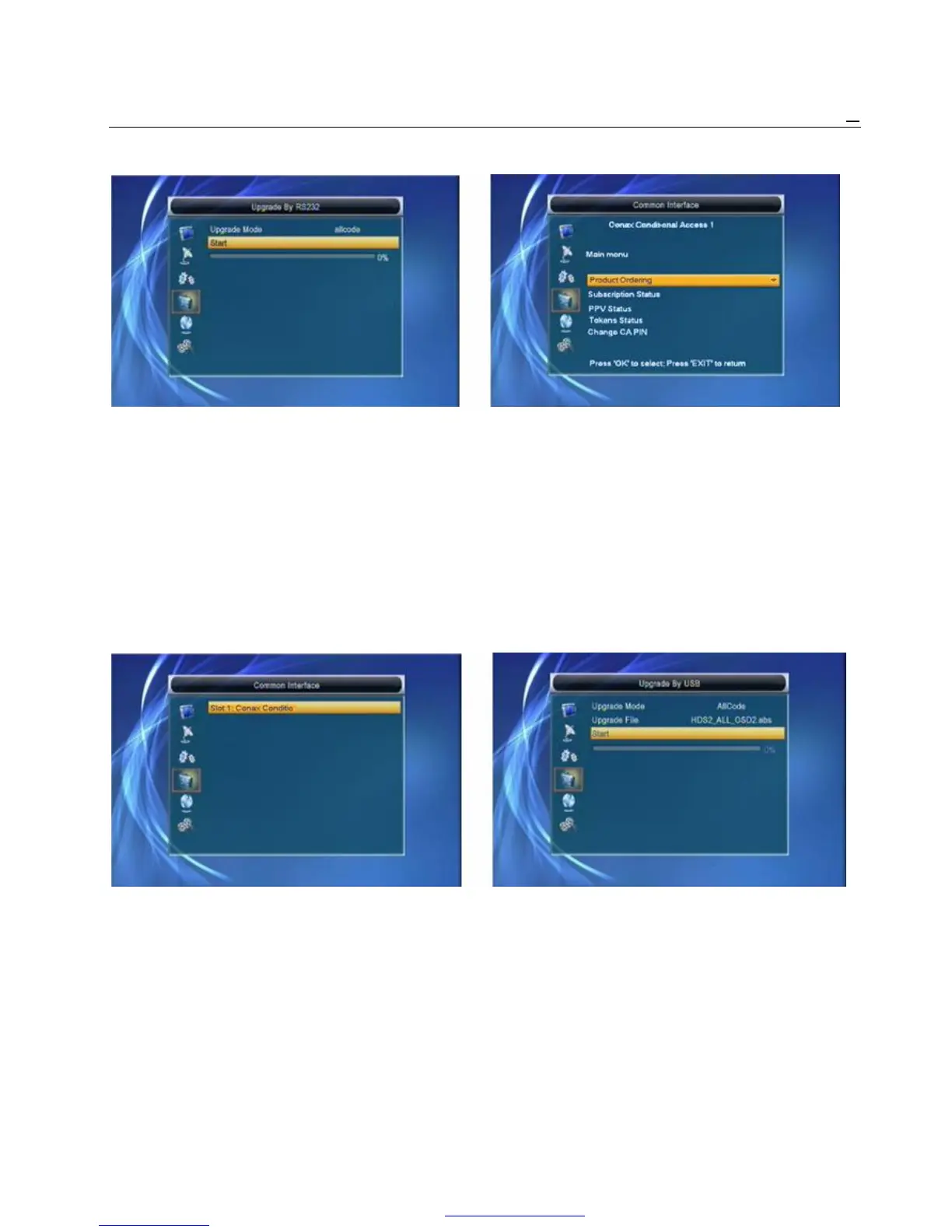 interface. Enter “Upgrade By RS232” menu receiver and string is according to CI card itself. So,