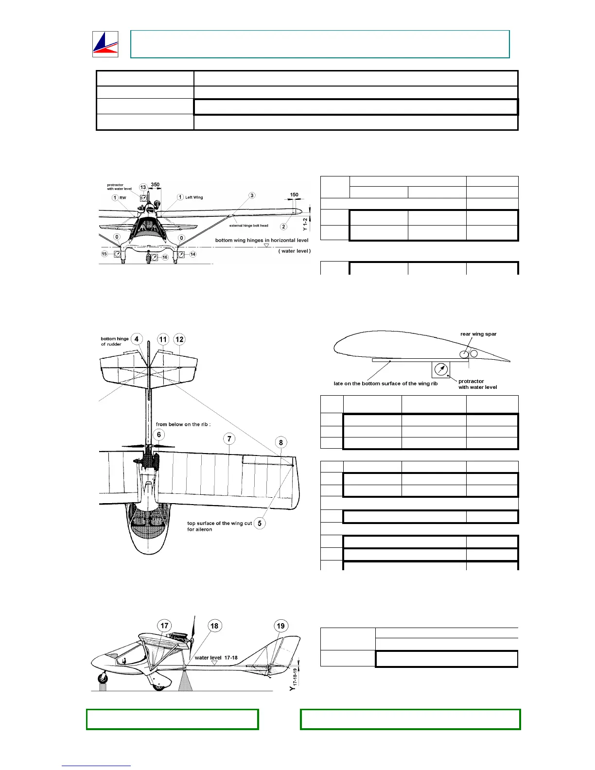 Measurement is made in airplane position with central tube in the angle 10,2°, when wing root is in the water level.